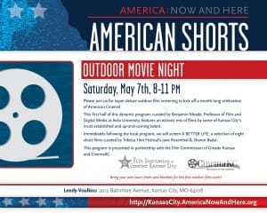 Join us and the Film Commission of Greater Kansas City at the Leedy-Voulkos gallery at 2012 Baltimore Avenue on Wednesday, May 11th from 7:00 – 8:30 pm as we present…
