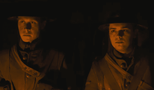 The two marvel at the complexity of German engineering (the Huns’ trench network is made of concrete with subterranean barracks outfitted with bunk beds; the Brits basically squat in the mire). They talk about duty and valor. The still-idealistic Blake is shocked to learn that Schofield has traded his combat medal to a French officer for a bottle of wine (“I was thirsty”).