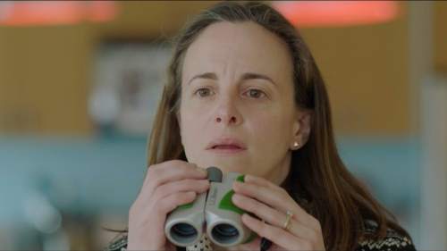 Curry’s script starts out darkly humorous as the couple watch their neighbors’ sexual shenanigans (“Disgraceful.” “Stop drooling.” “Whoa, that’s a new one.”) They even get a pair of binoculars to better catch the show. (“They’re like a car crash you can’t look away from.” “Do they have jobs…or clothes?”)