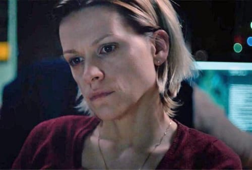 On the other end of the line is a police emergency dispatcher (Veerie Baetens) who quickly deduces that a kidnapping is in progress, asks carefully-posed questions (all “yes” or “no” answers, lest the driver catch on) and dispatches patrol cars to intervene.