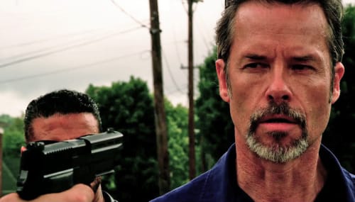 In York Alec Shackleton’s unintentionally goofy actioner, Pearce plays Jim Dillon, who left the Texas Rangers after accidentally shooting and paralyzing his partner in a hostage standoff. Now he’s the law in the tiny burg of Horse Cave. Apparently the place has a very low crime rate, because Jim has for years refused to carry a gun.