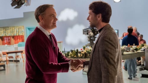 Which is where Hanks’ superlative performance kicks into high gear. Yeah, he’s got the Rogers mannerisms down — the goofy grin, the calm voice, the cardigan sweater and the the changing-into-the-sneakers bit. Physically the performance is a triumph of impersonation (and the film effortlessly inserts Hanks into video of vintage Rogers broadcasts).
