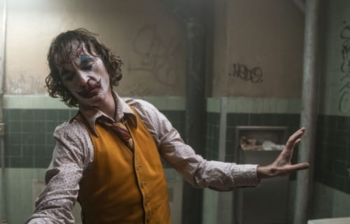 Less conventional comic book material than existential scream, Todd Phillips’ take on the legendary D.C. villain gives us Joaquin Phoenix as a hapless loser transformed by isolation and grief into a clown-faced avenging angel.