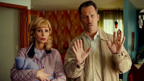 That’s until they find a mute 10-year-old girl chained in the basement and are interrupted by the arrival of homeowners George and Gloria (Jeffrey Donovan, Kyra Sedgwick), who are also serial kidnappers/killers.