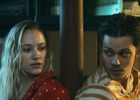 In Dan Berk and Robert Olsen’s black comedy, Mickey (Bill Skarsgard) and Jules (Maika Monroe) are the stars of their own sweetly demented version of “Gun Crazy.”  They are to real criminals what white suburban teens are to genuine gang bangers — they talk tough and are sexually turned on by  criminal behavior, but they’re so thick they don’t think to fill the tank of their getaway vehicle before robbing a convenience store.